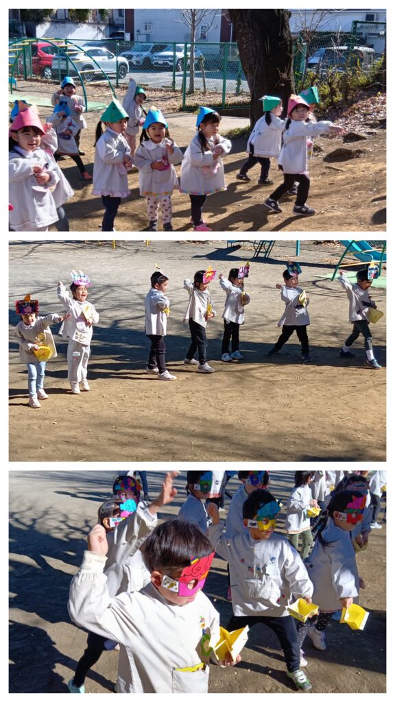 「おには~そと!ふくは~うち!」と元気いっぱいの子ども達。