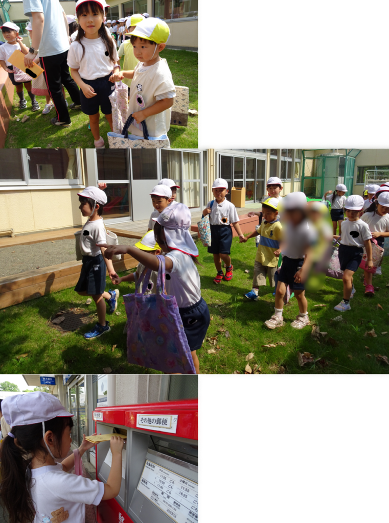 敬老の日のプレゼントをすみれ組さんと一緒に出しに行きました!