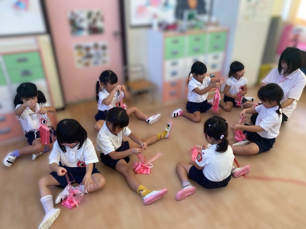 運動会の当日に使うポンポンを自分たちで作りました♪