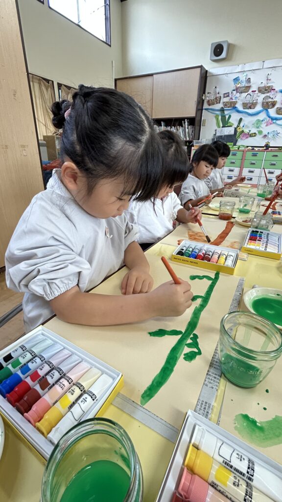 年中さんになって自分の絵の具を初めて使いました。