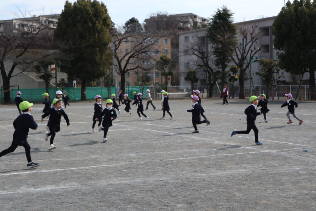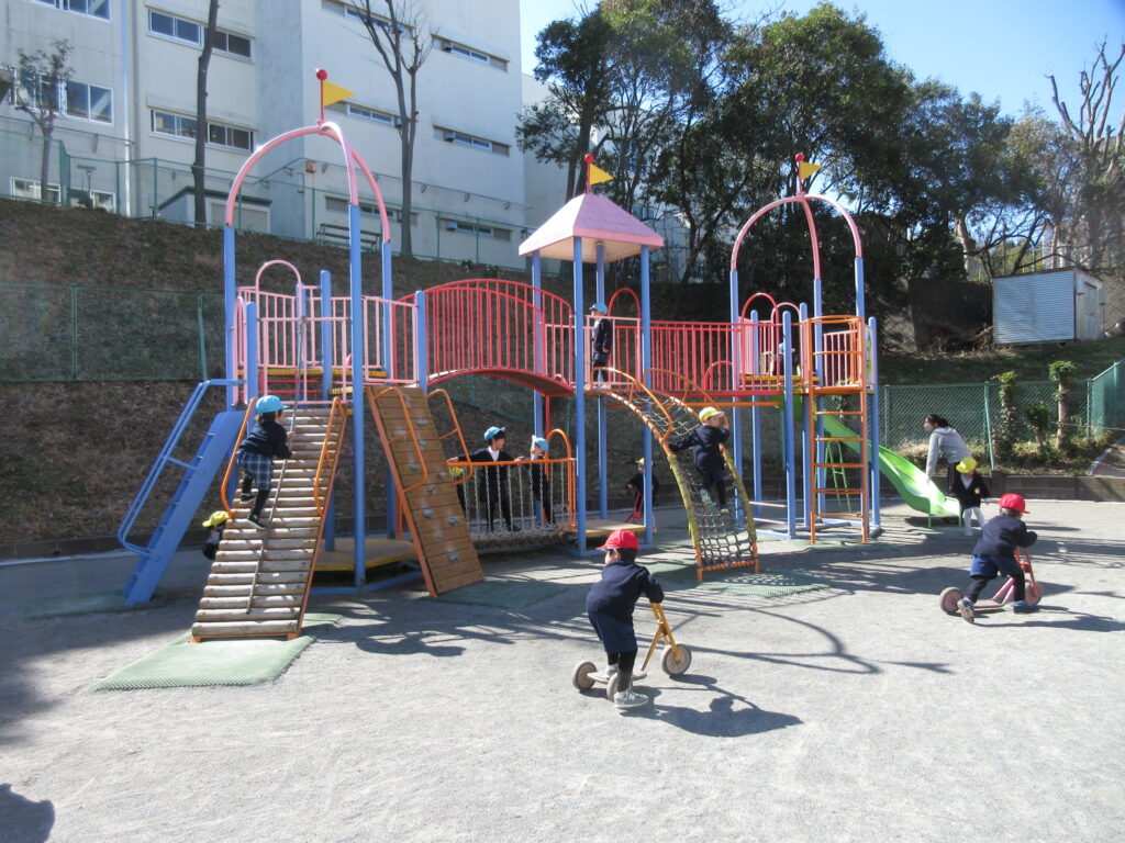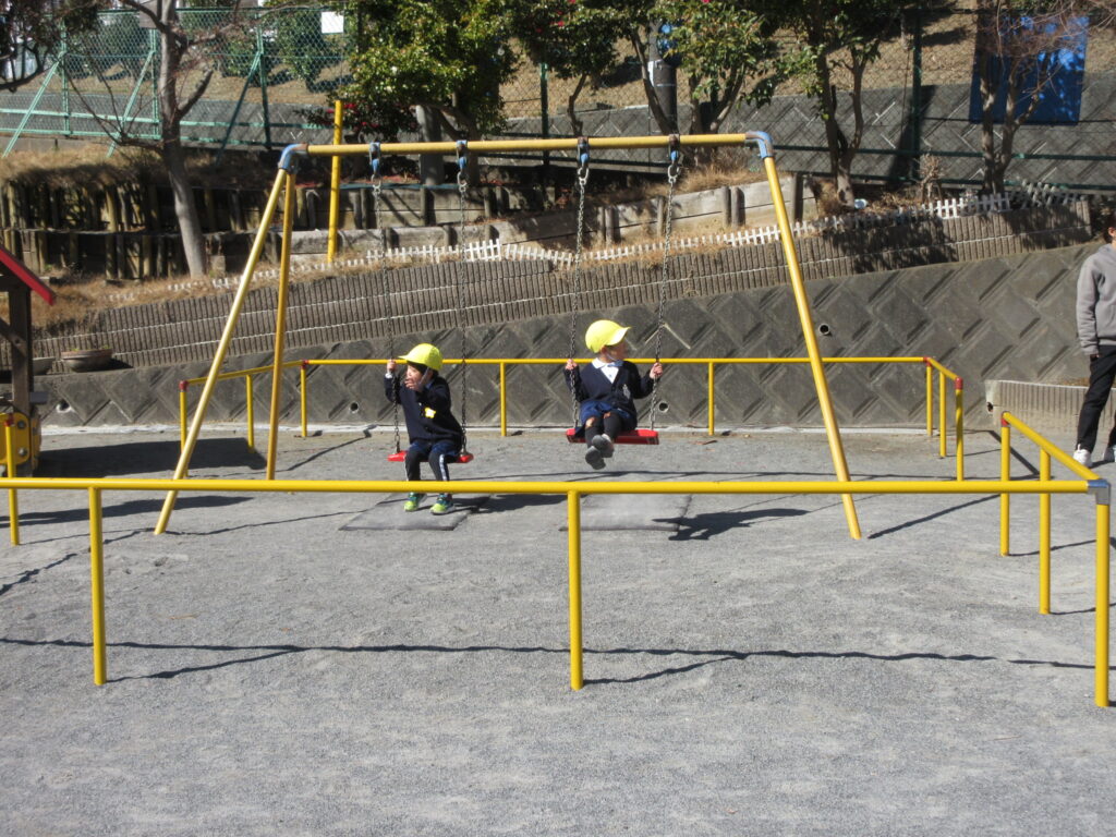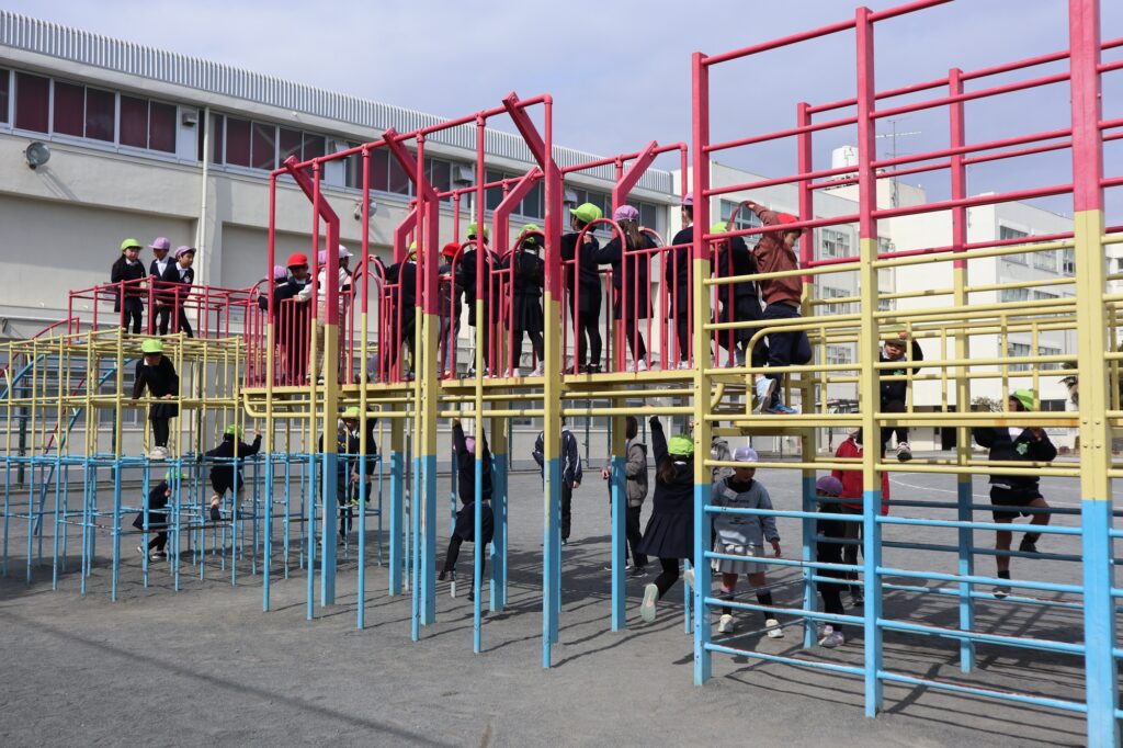 体験後、校庭に出て1年生と氷鬼をして、遊具で遊びました。