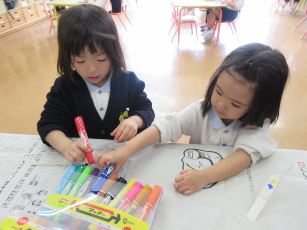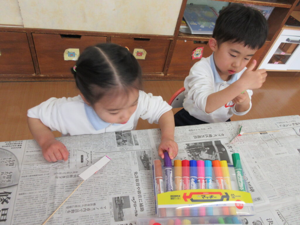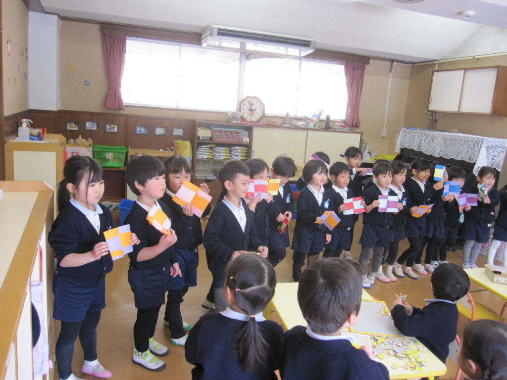 手品カードを作って年少さんに披露しました。