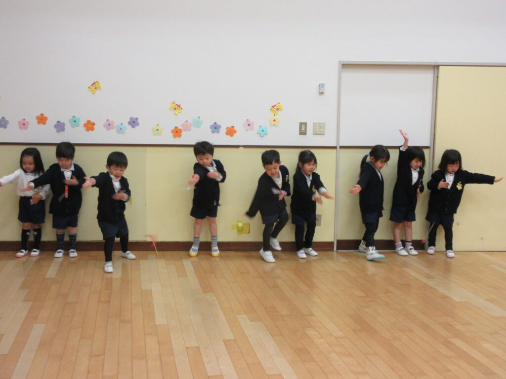 紙トンボを作って、ホールで飛ばして遊びました。