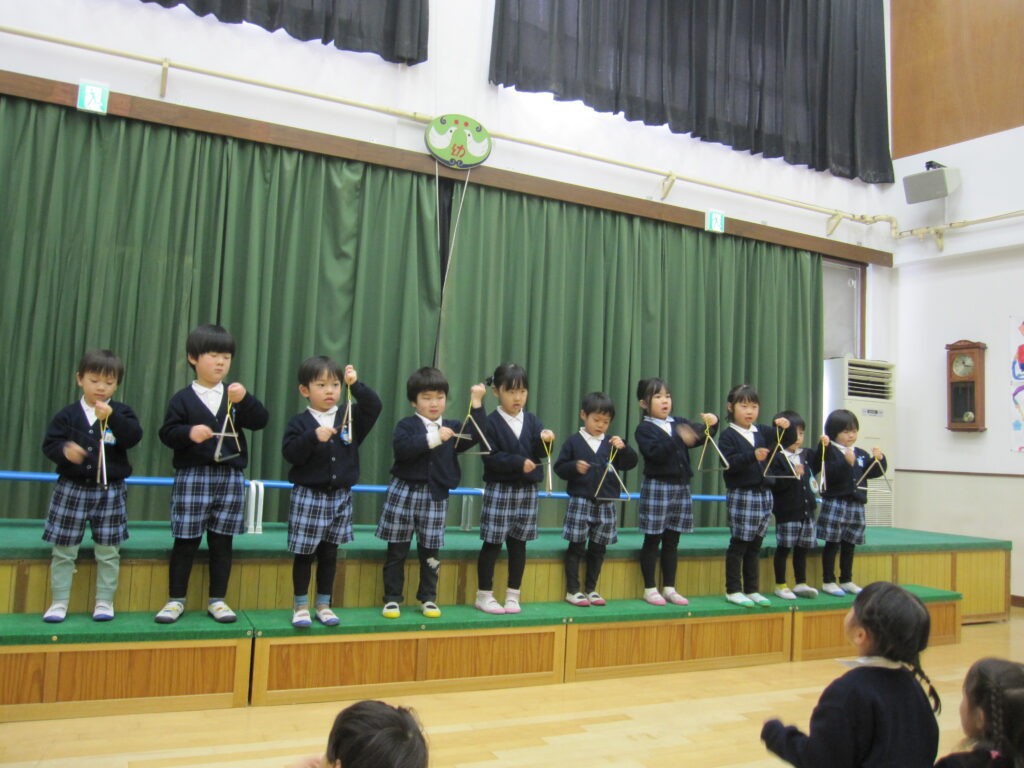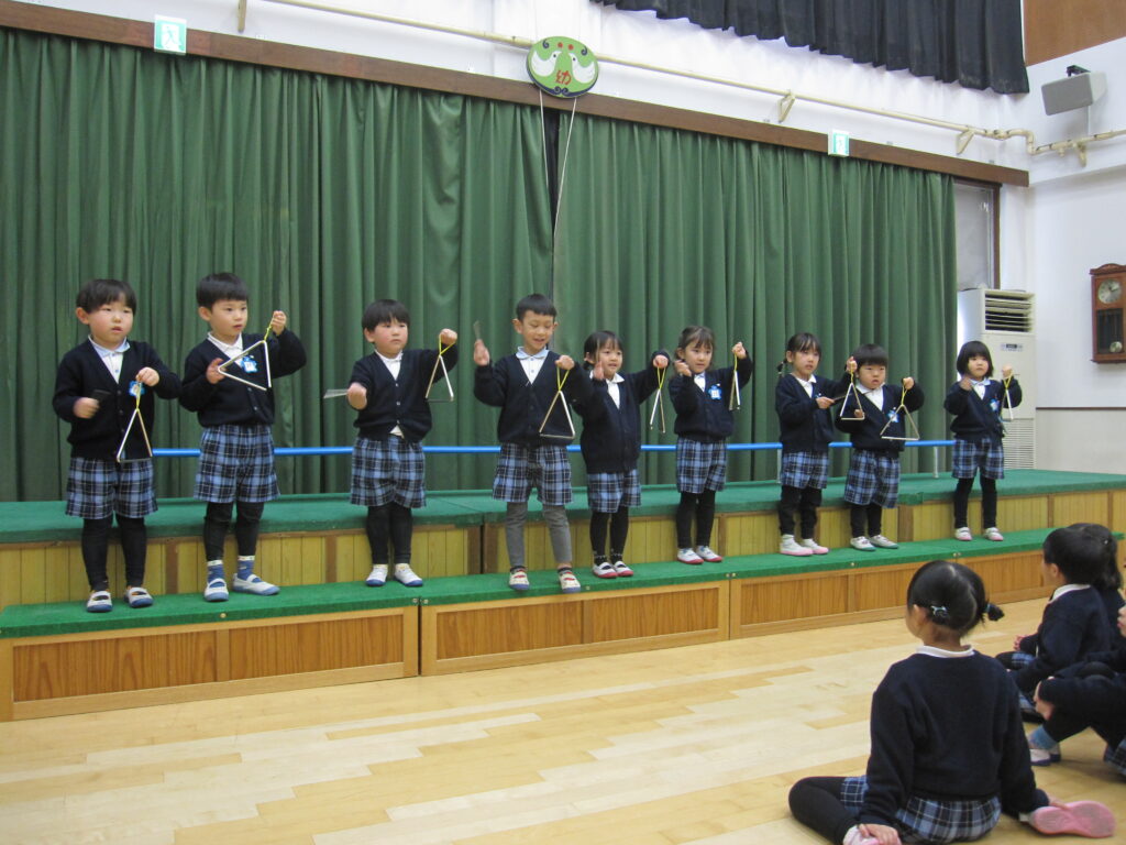 舞台の上に立ってトライアングルを鳴らしました。