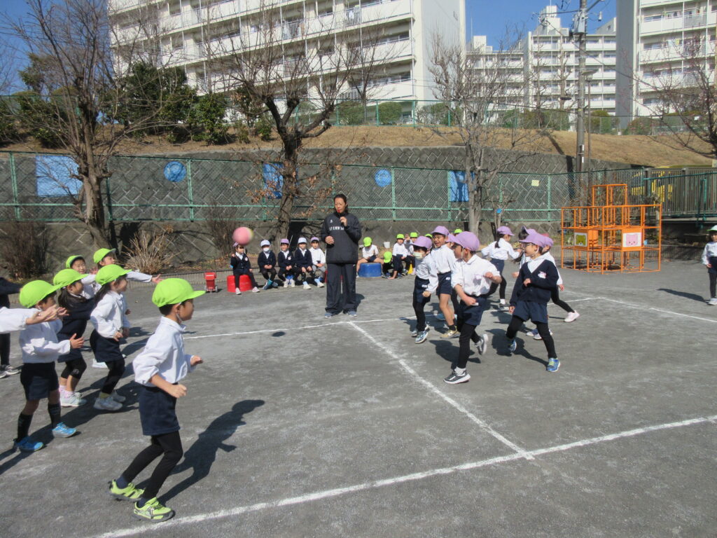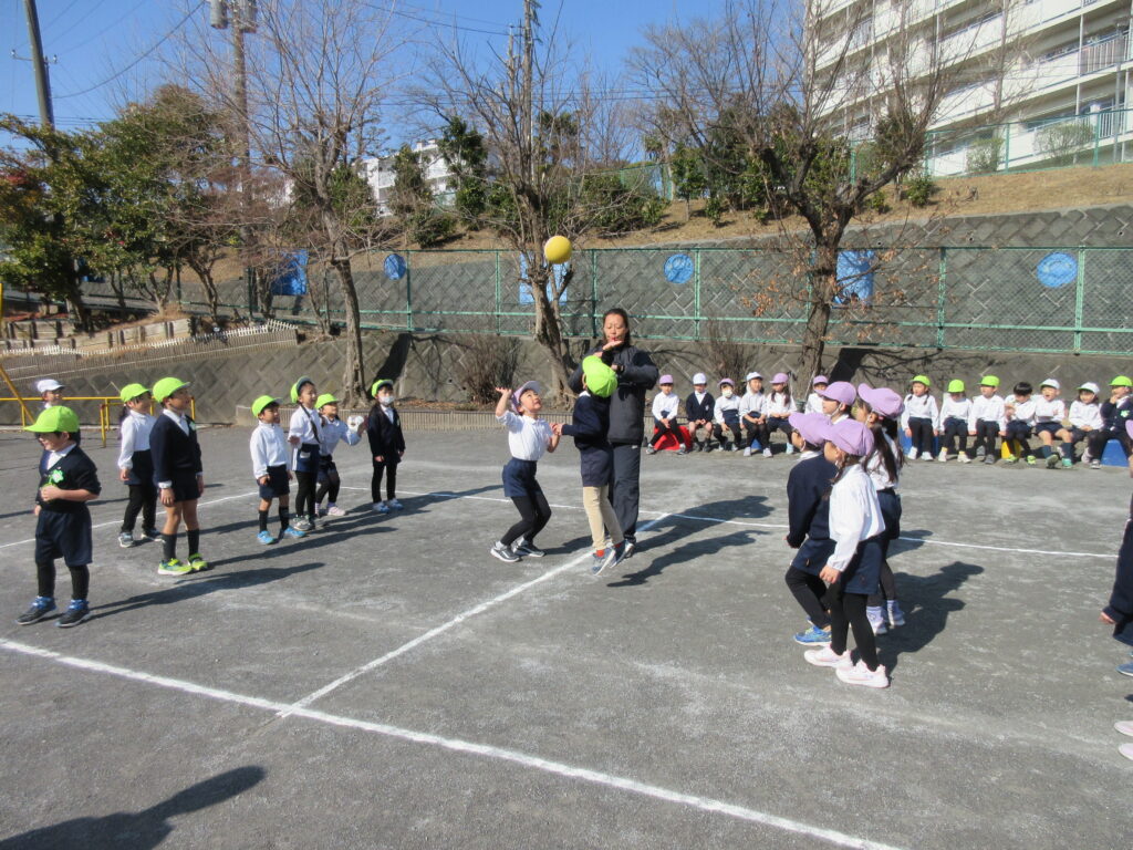 ふじ組、うめ組でドッジボールをしました。