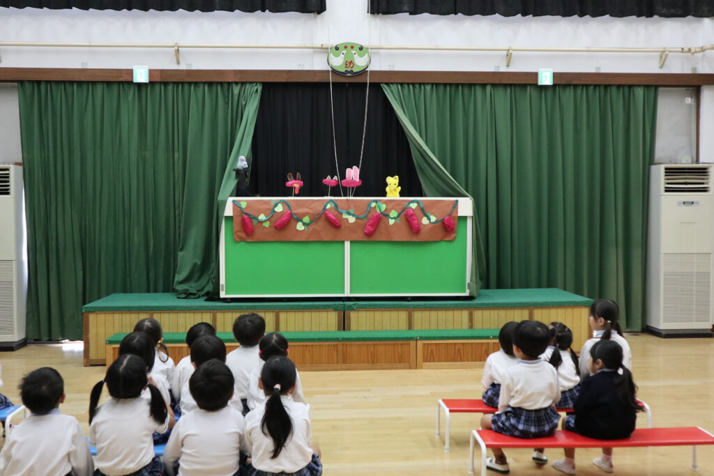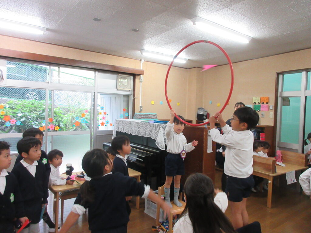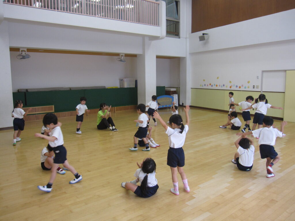 21日(火)リトミック 蝶と花になりきったりリズムに合わせて手を叩いたりしました。