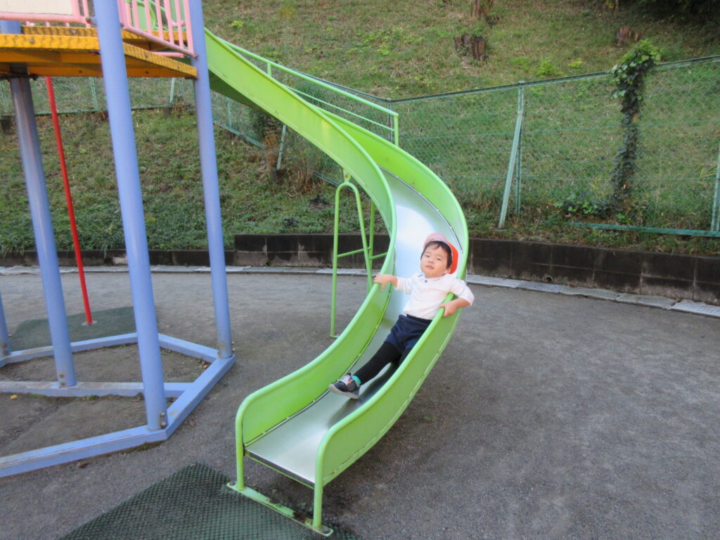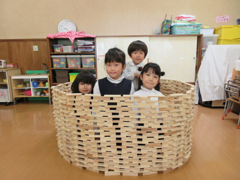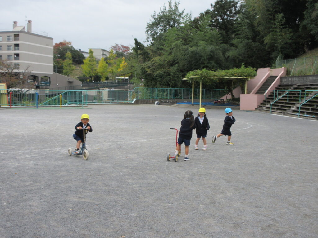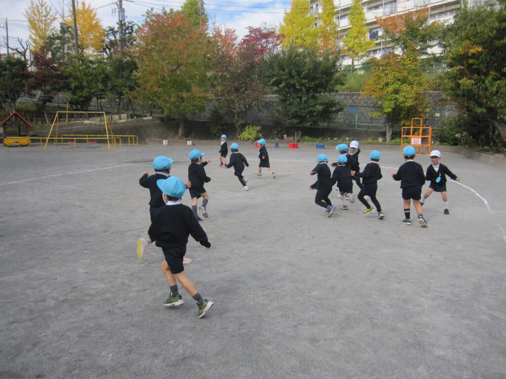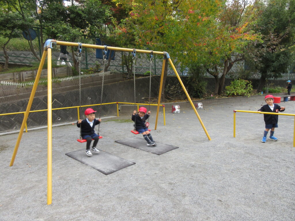 年中さんと一緒に南公園に行きました。落ち葉を拾ってライオンを作りました。