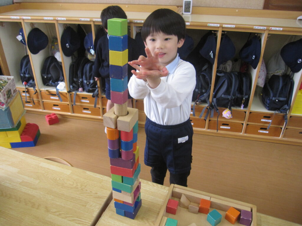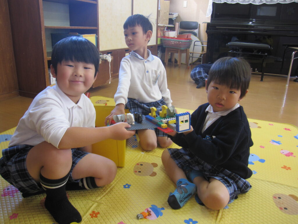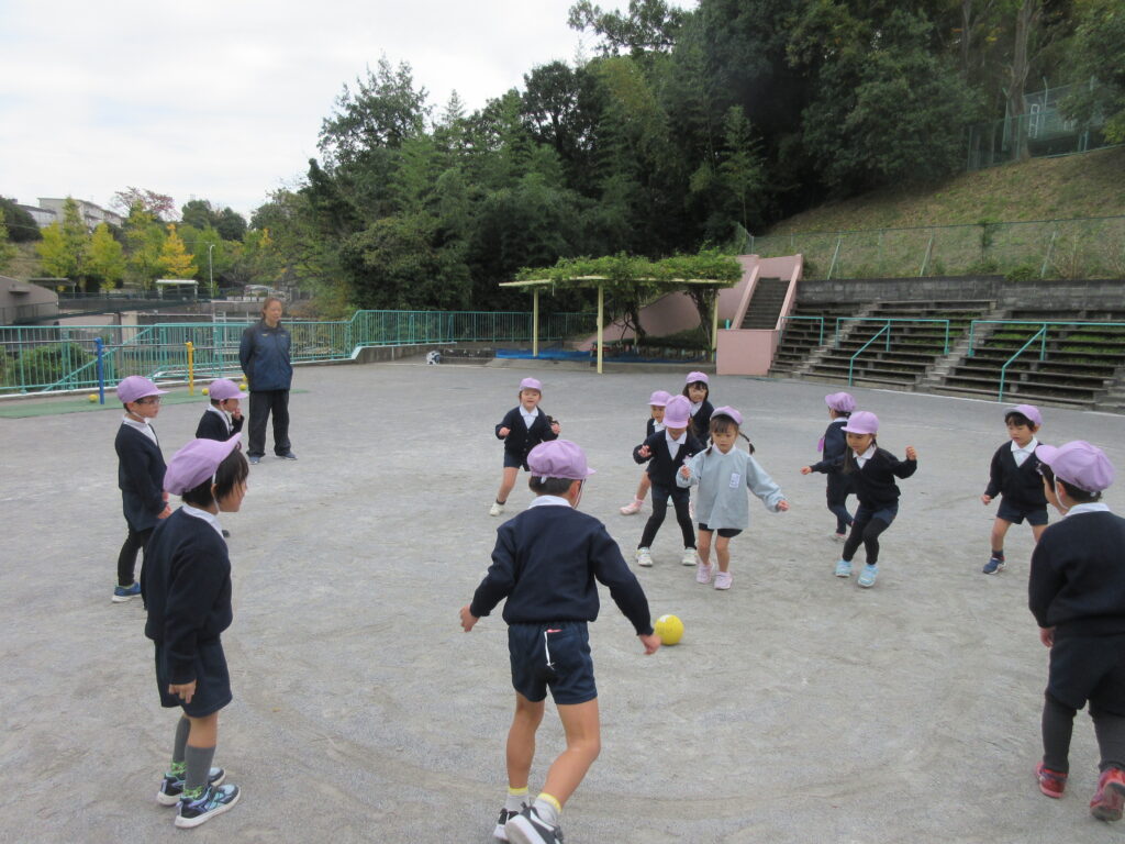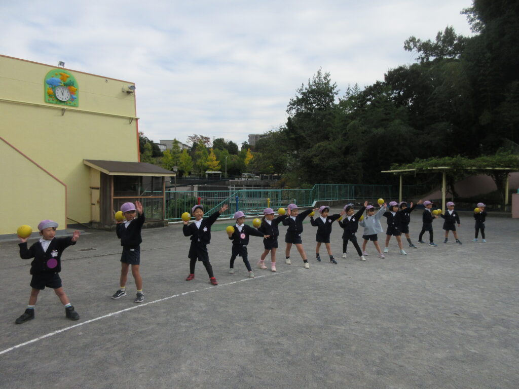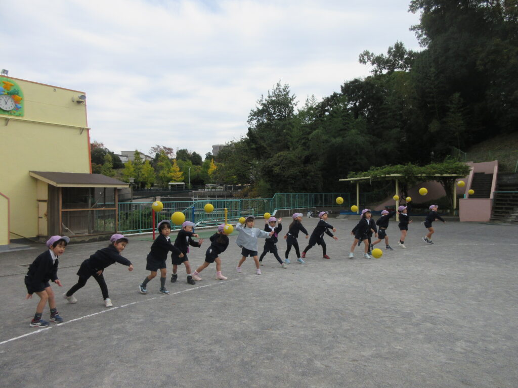 ボールを投げる練習と、ボール転がしゲームをしました。