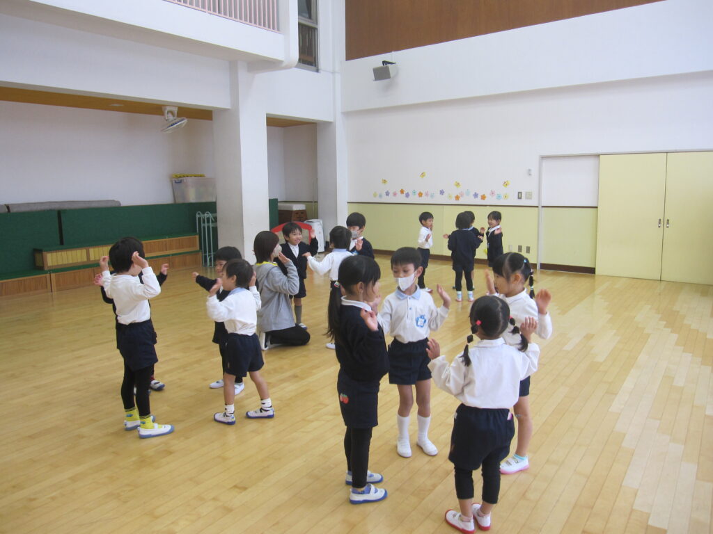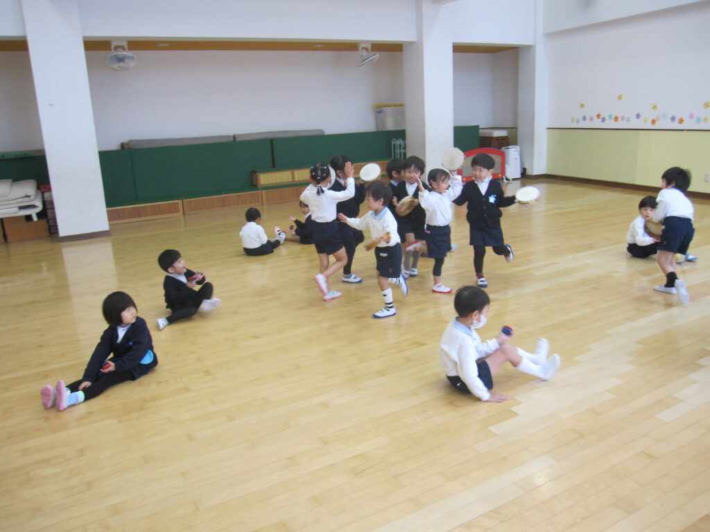 タンブリンやカスタネットを使い、リズム打ちを行いました。