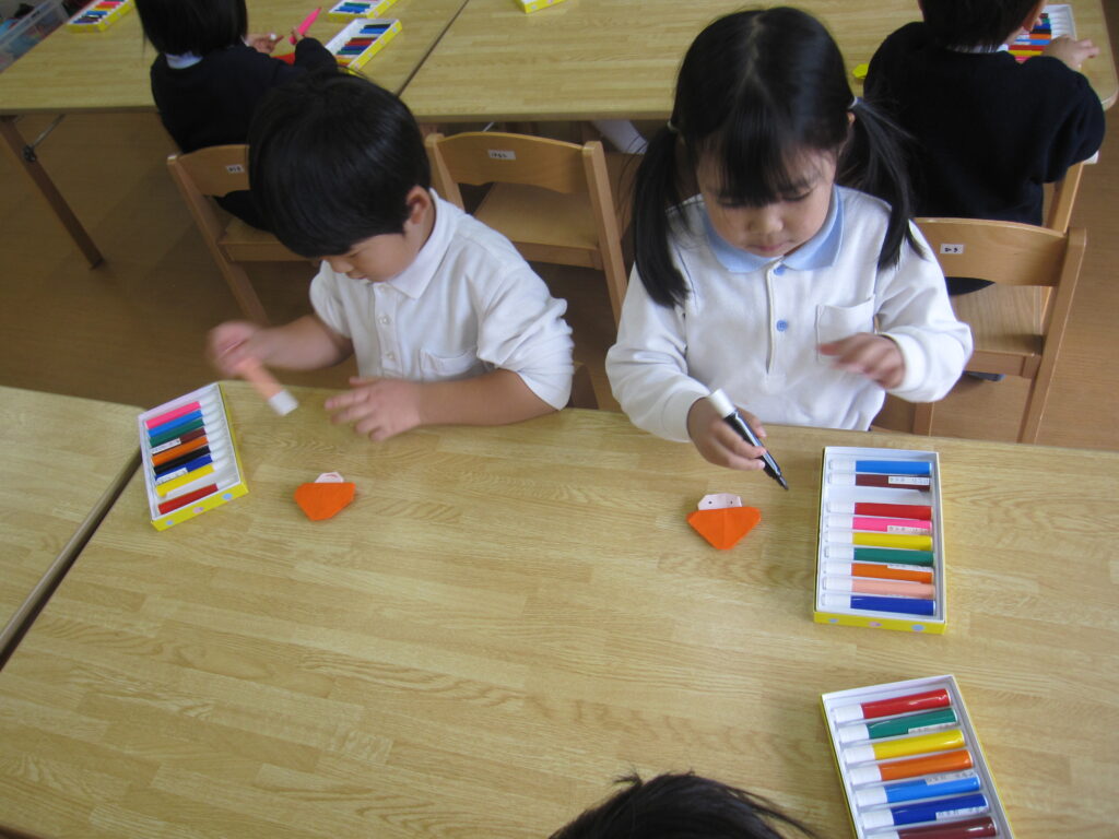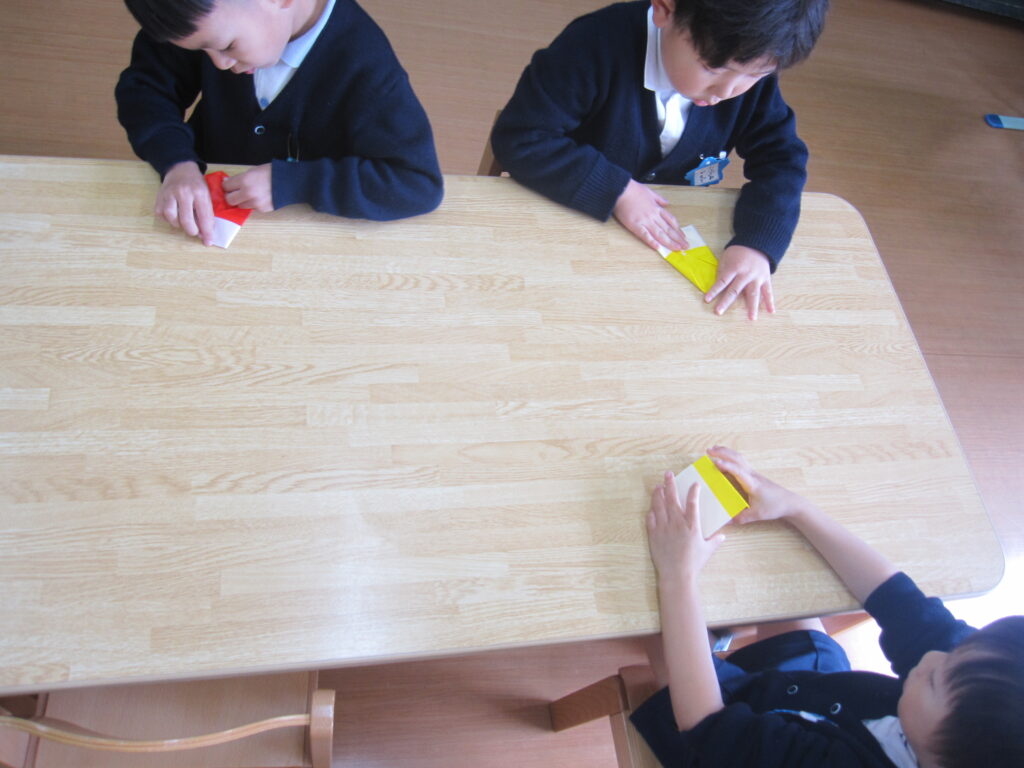 赤・黄・オレンジの中から好きな色を選んできのこを折りました。