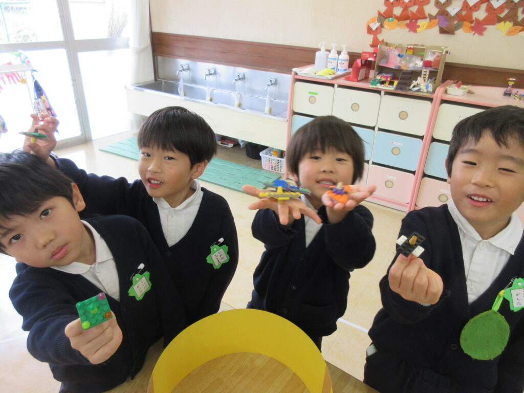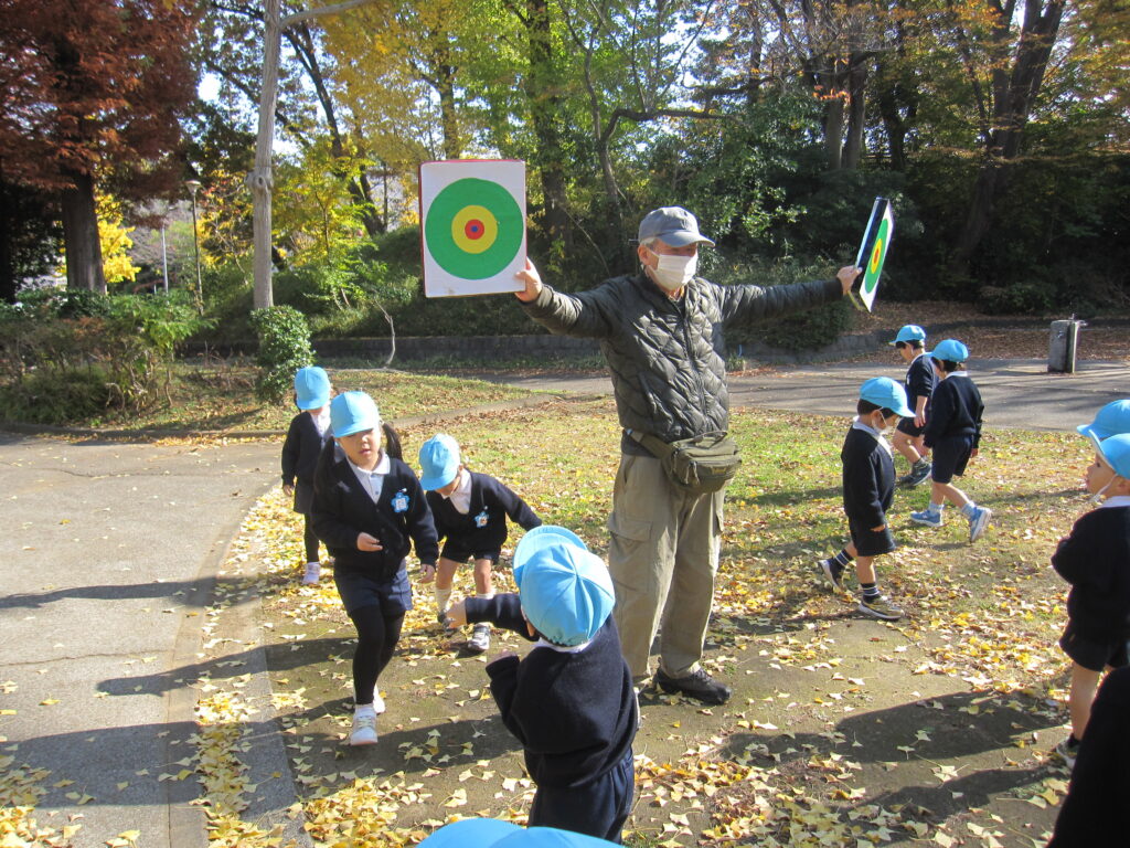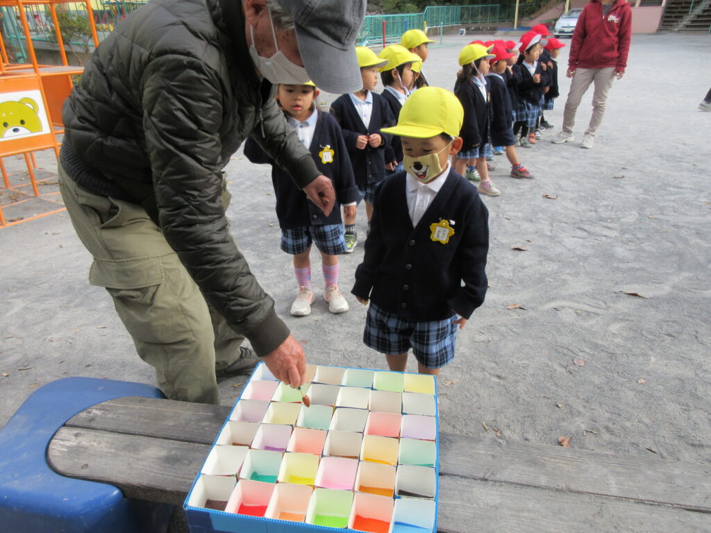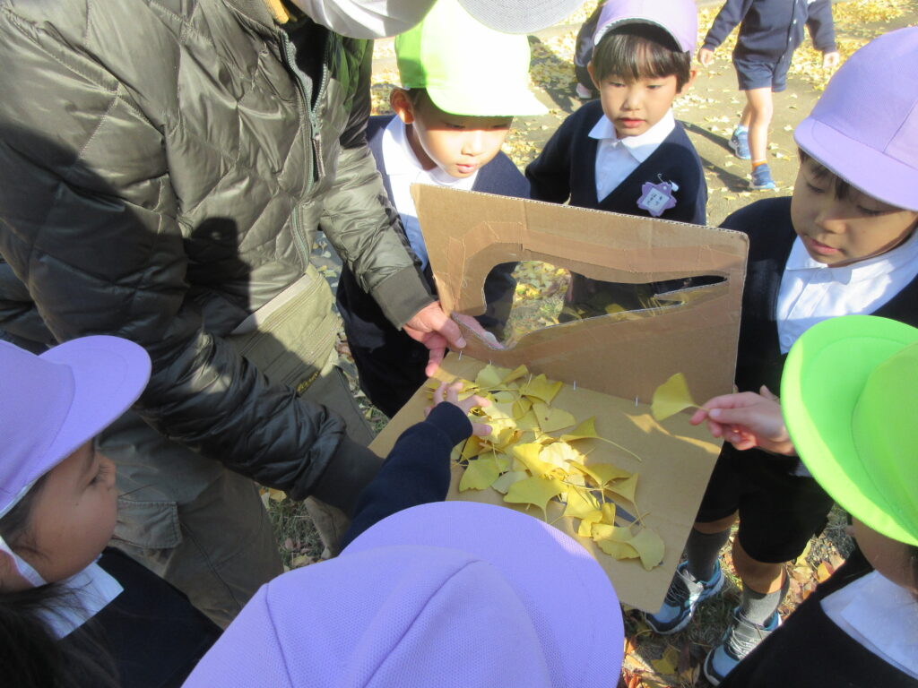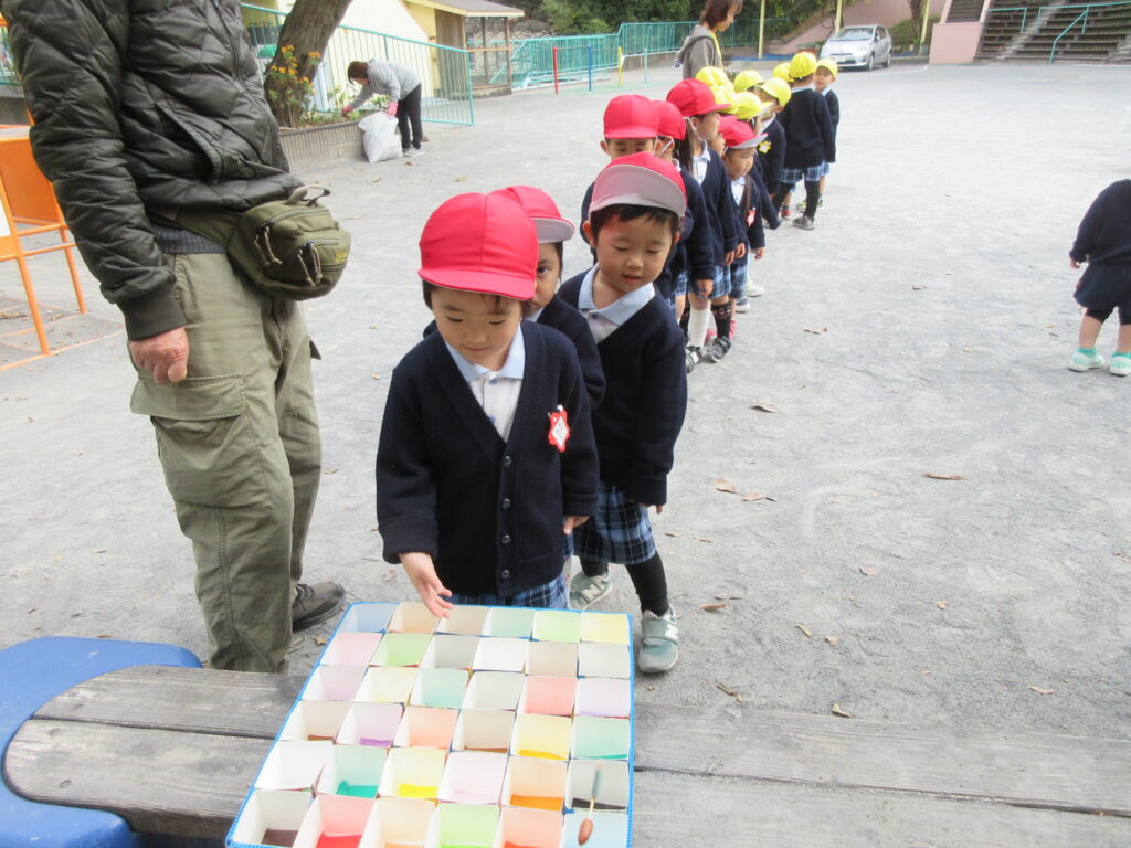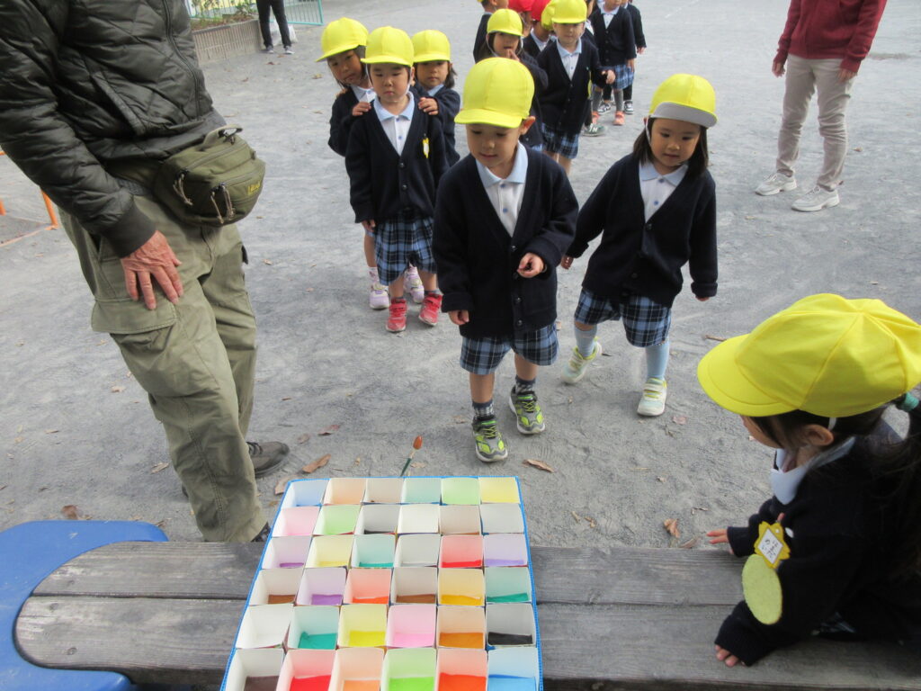 どんぐりダーツで色を決めて、自然物探しをしました。