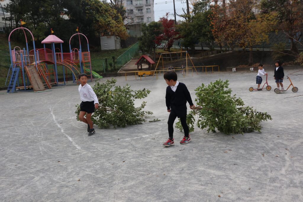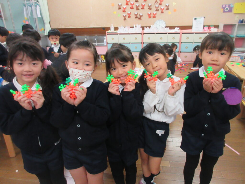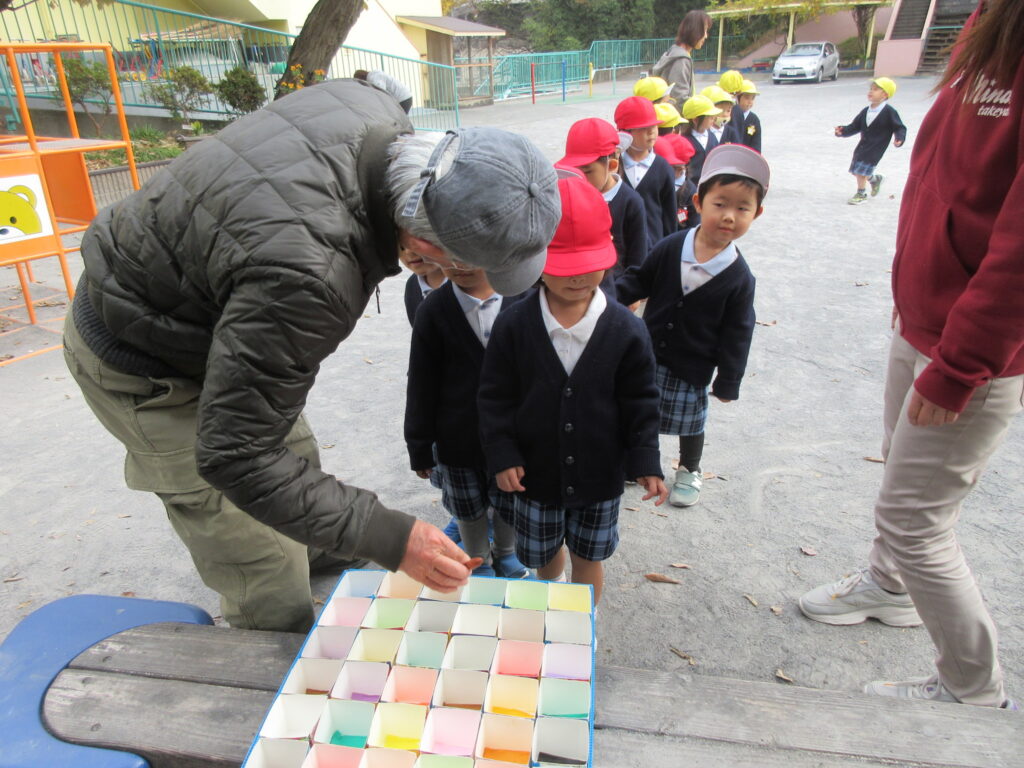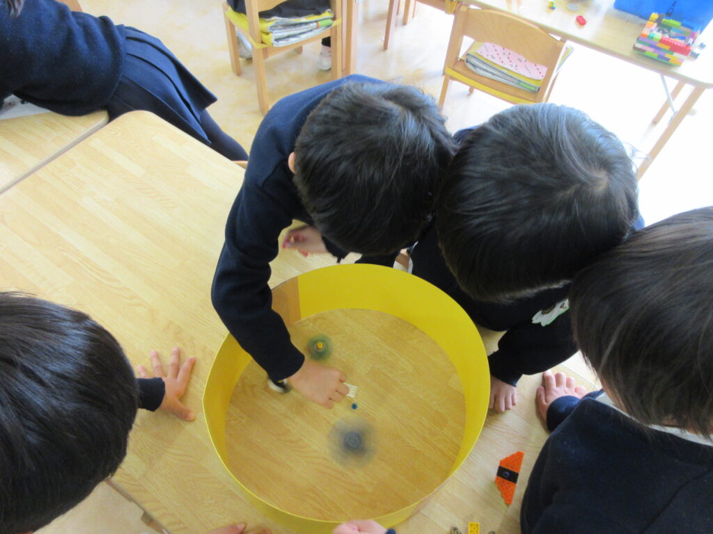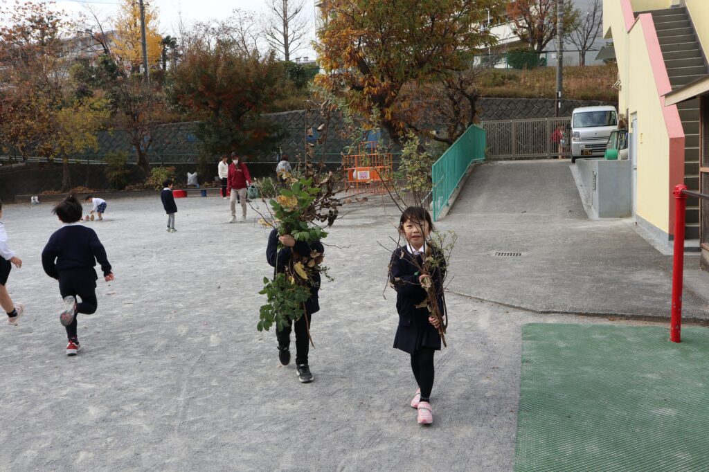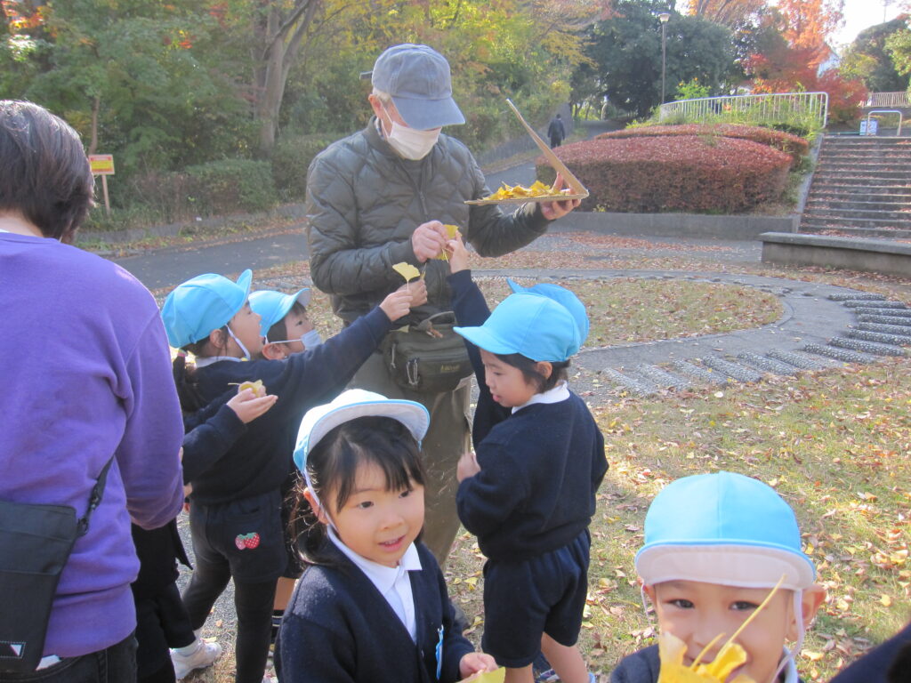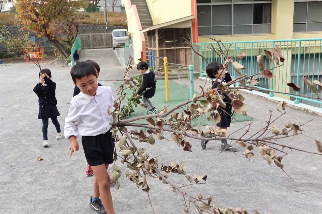 どんぐりダーツで色を決めて、自然物探しをしました。