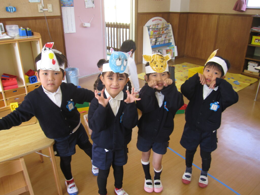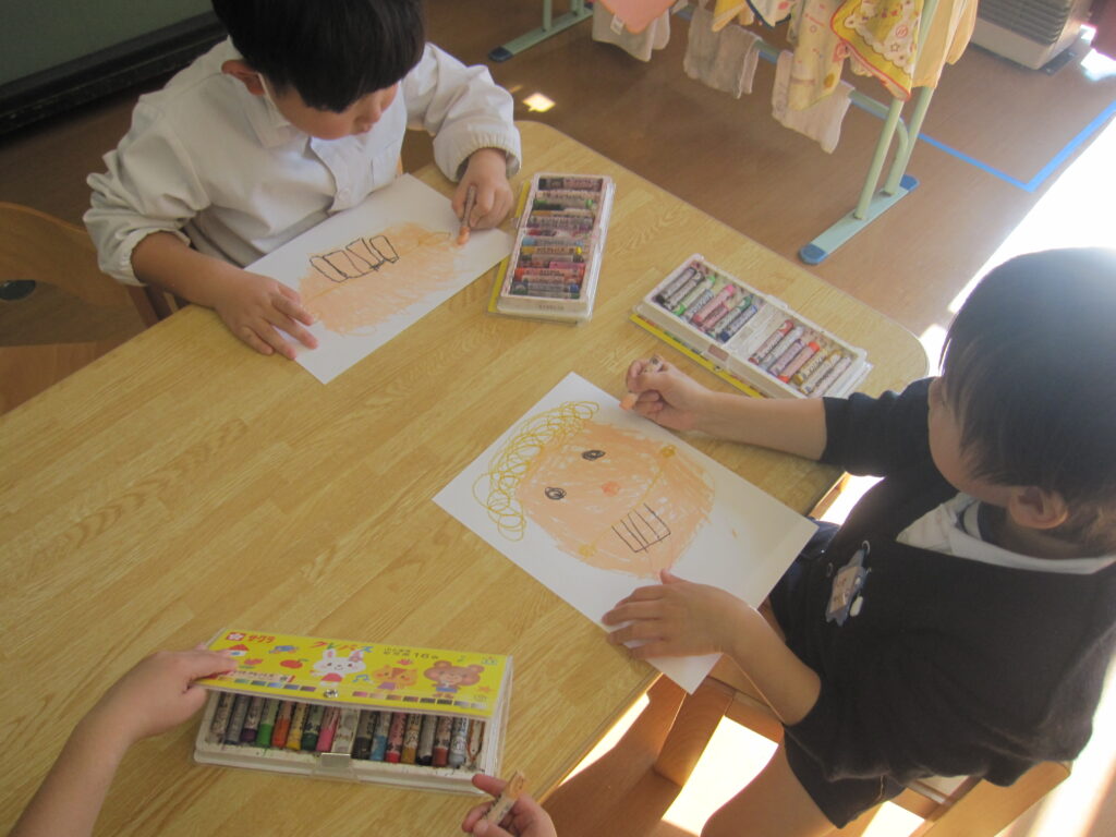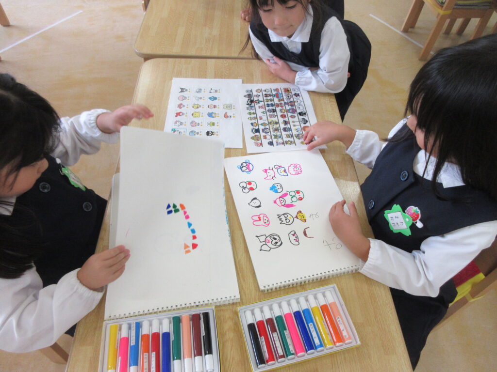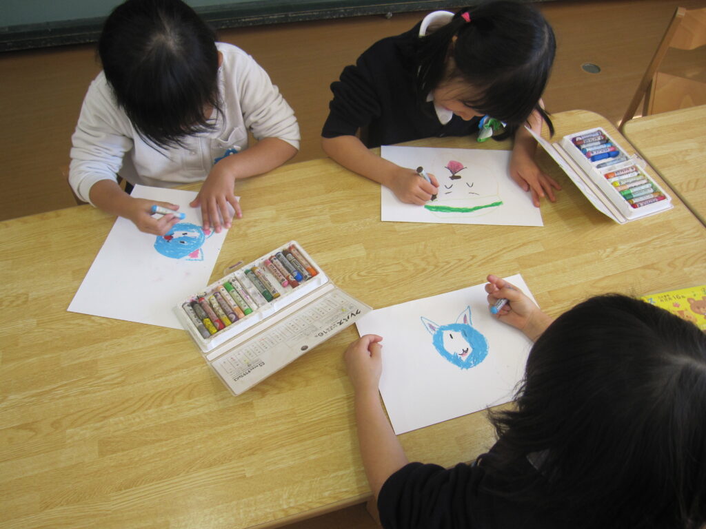 色の葉っぱを集めて、カラスの洋服を作りました。
