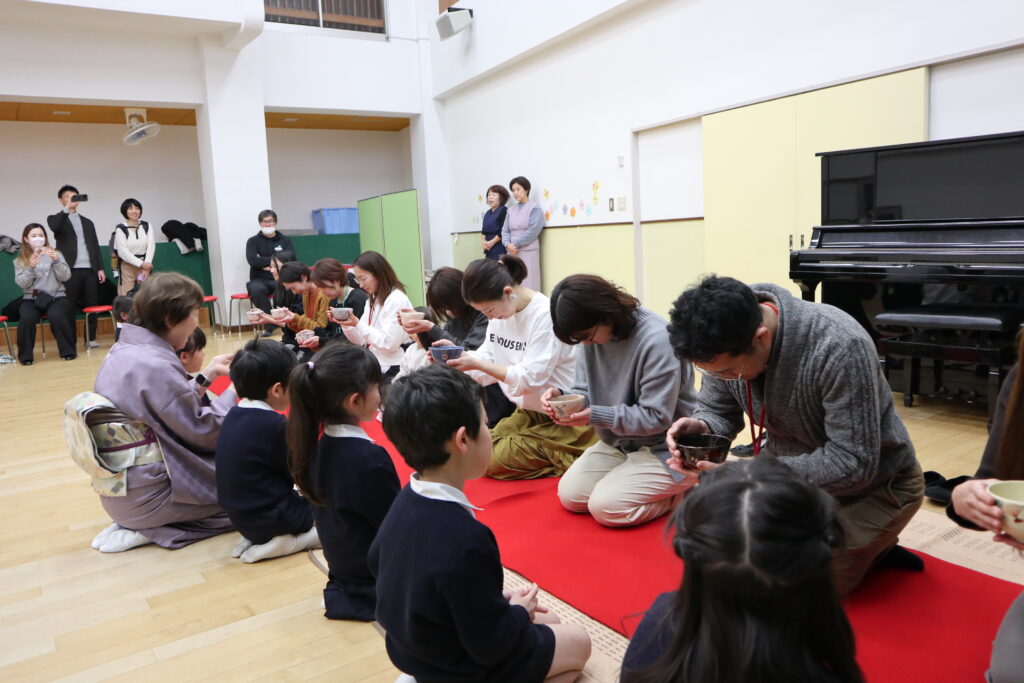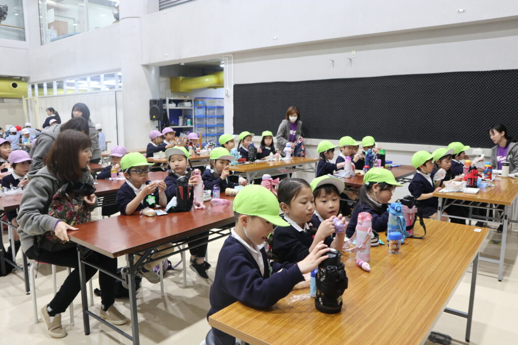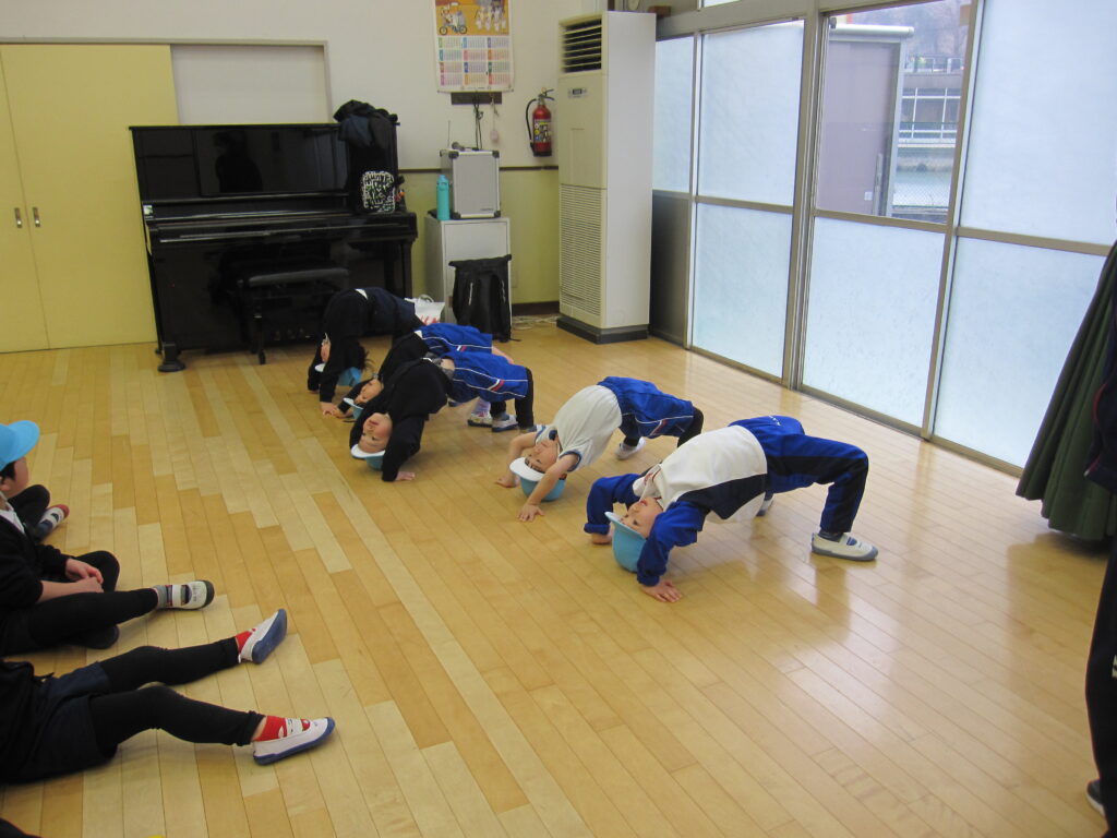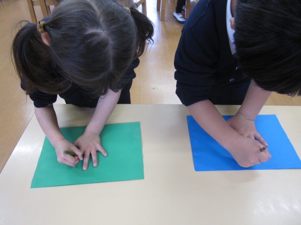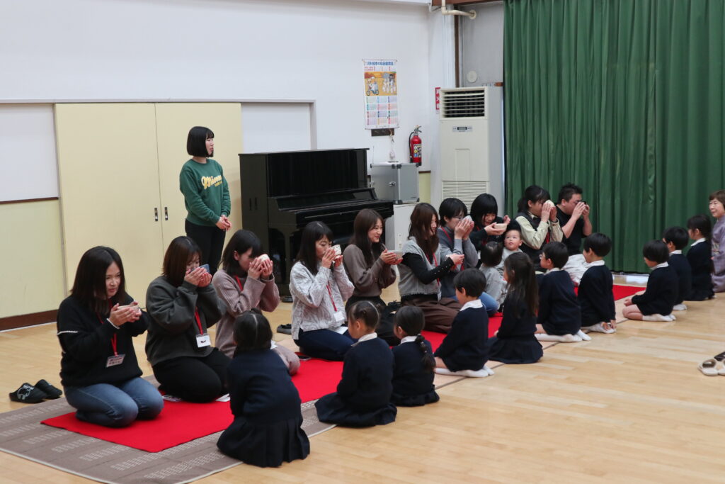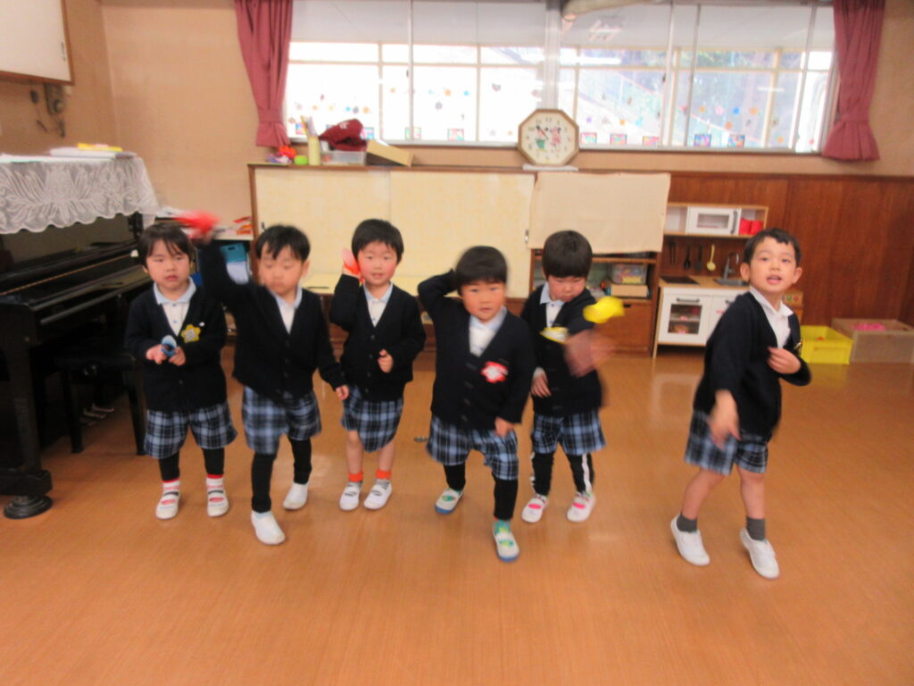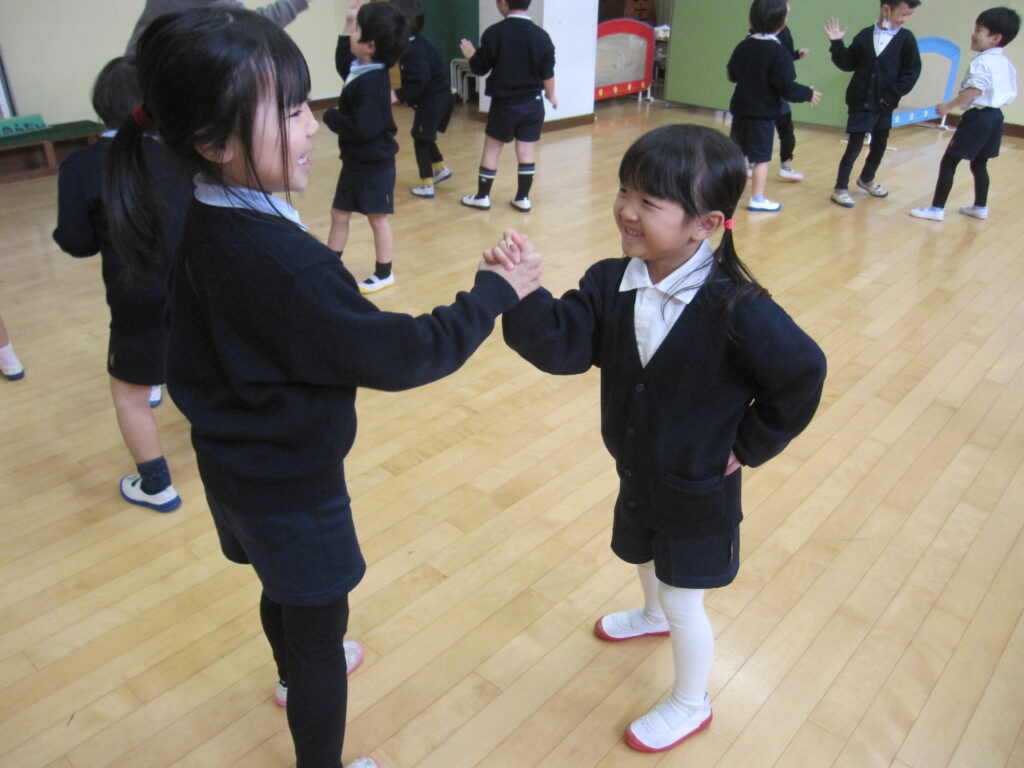 お友だちと2人組になって2・3・4拍子のリズムを叩きました。