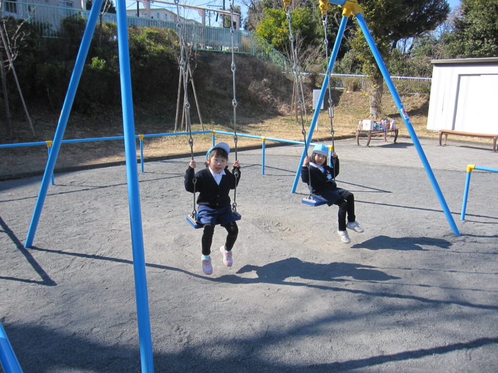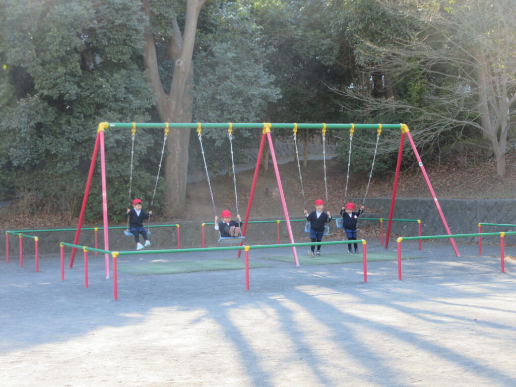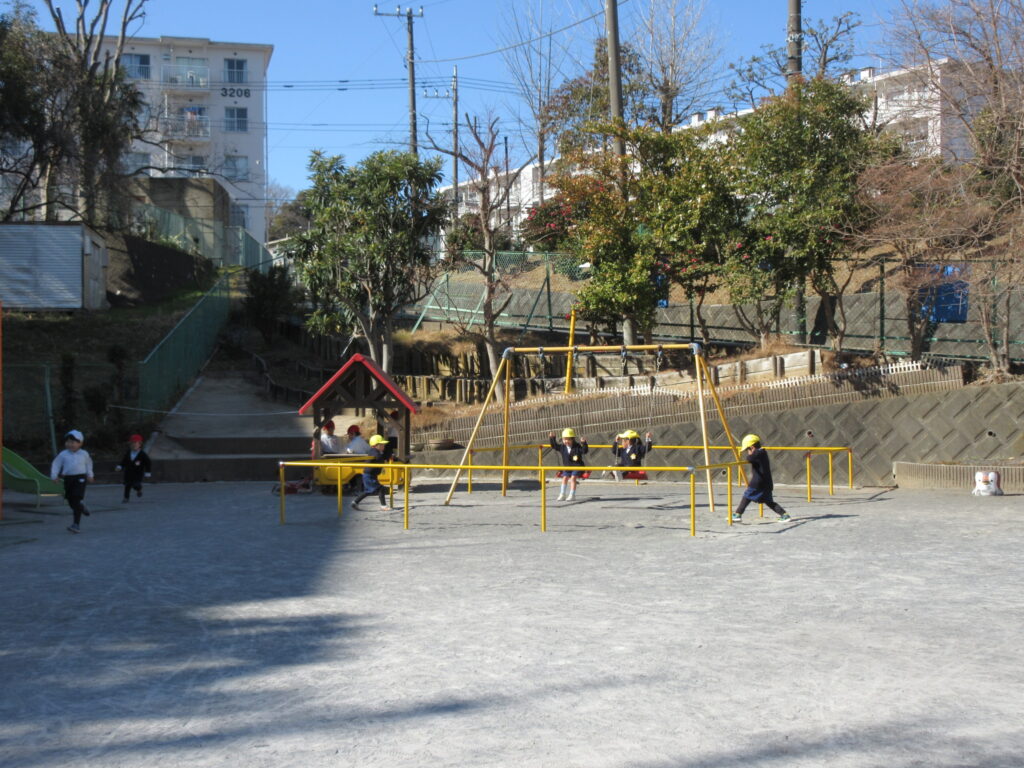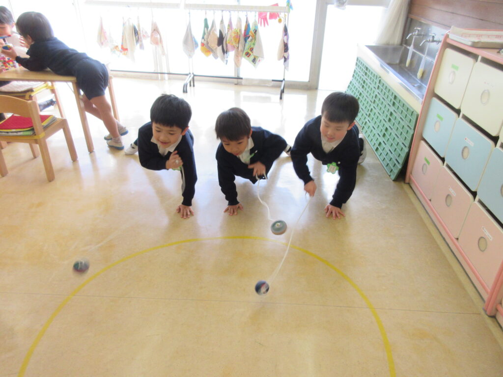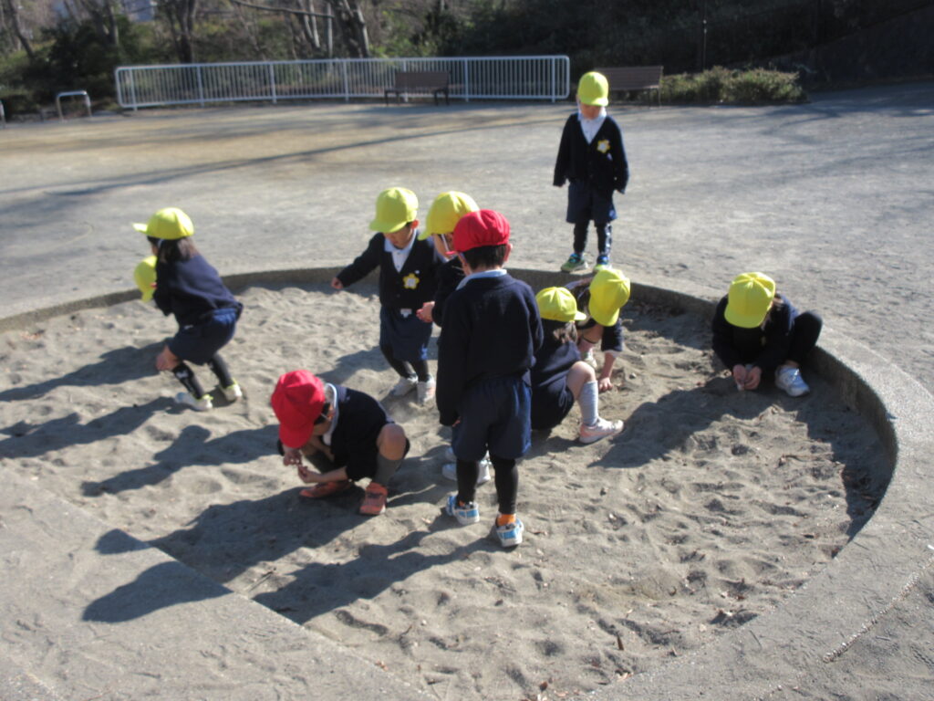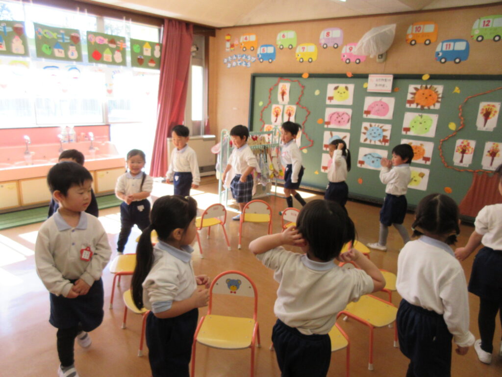 ホールで豆まきをしました。鬼のお面をつけて、鬼役をしました。