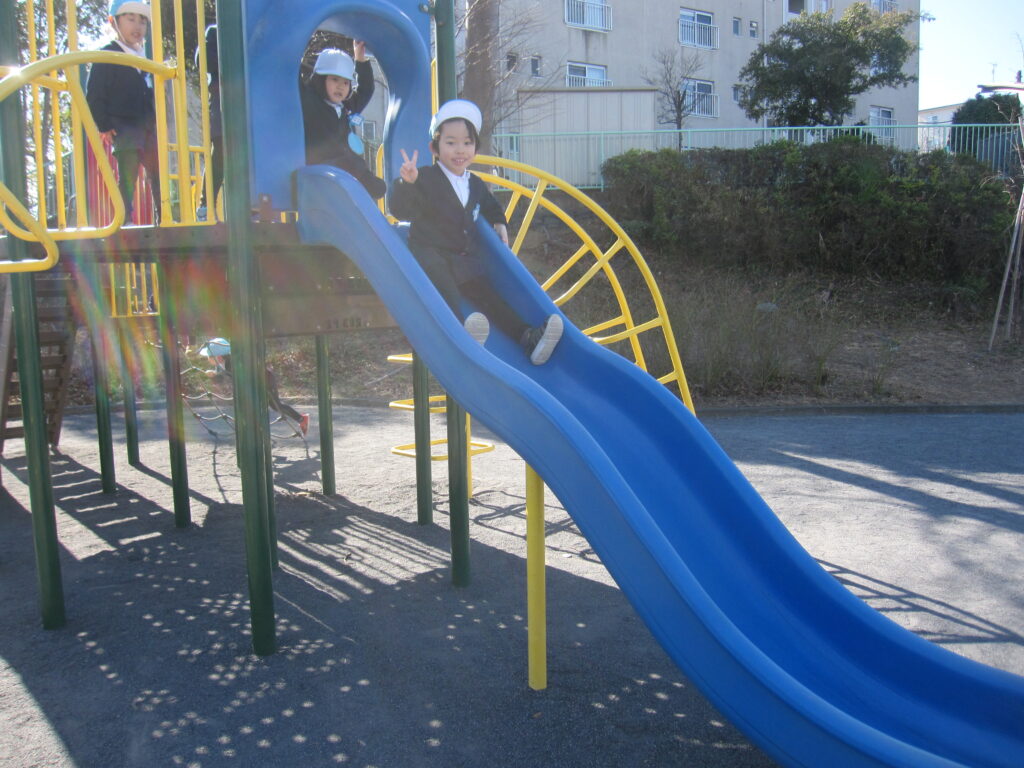 竹山幼稚園の壁に、自分たちが描いた絵を貼りに行きました。